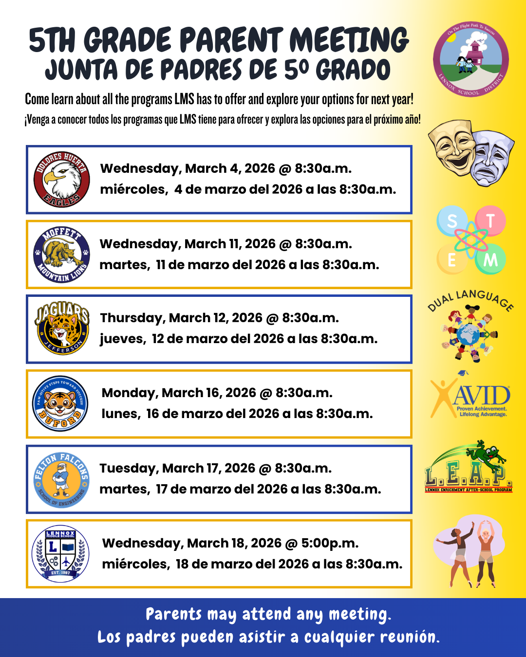 5th Grade Parent meeting/ Junta de padres de 5º Grado